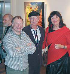 Fra venstre galleriejer Flemming Kassebeer fra netgalleri.dk og Copenhart Gallery, i midten kunstneren selv, maleren Preben Reinicke, samt konsulent Bente Højer til ferniseringen på Galleri Ravn.